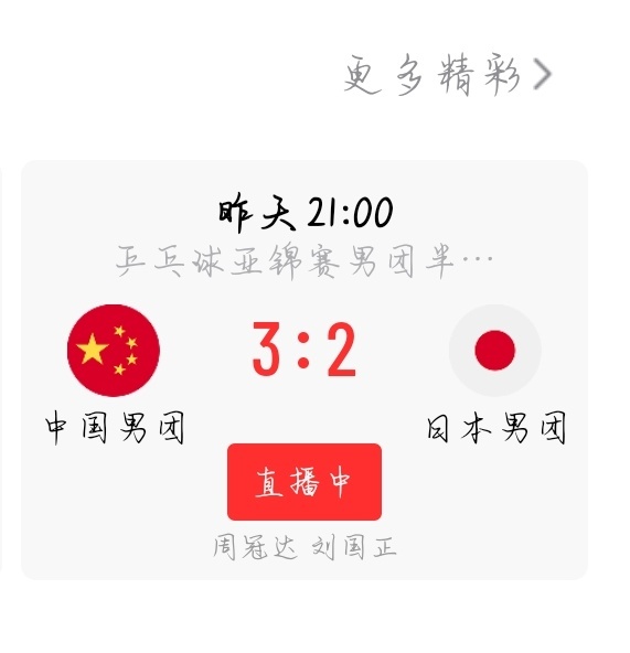 最终中国队苦战五盘以3:2拿下这场比赛,进入明天的决胜赛