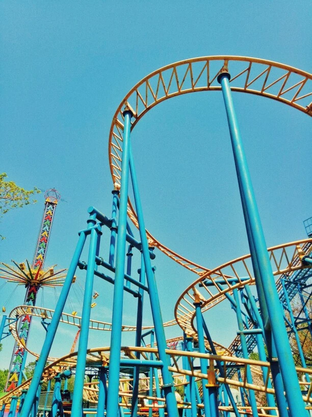 看着高处的过山车,你有些害怕