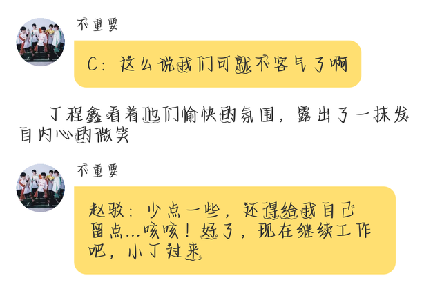 不重要赵驳:看看人家,看看你们!好好学学人家的情商,小丁赶紧你先去收拾吧,待会儿开始正式工作。