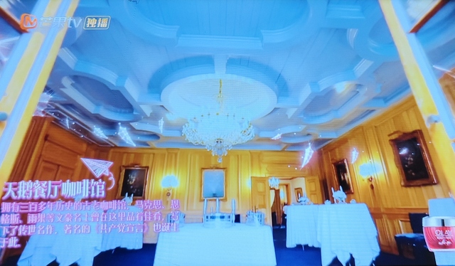 谢娜说这个当时马克思 最爱光顾的咖啡厅 而且当年马克思坐的座位 还按原位置保持在店内