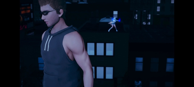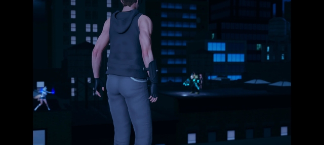 与此同时,在附近一栋大楼的屋顶上。