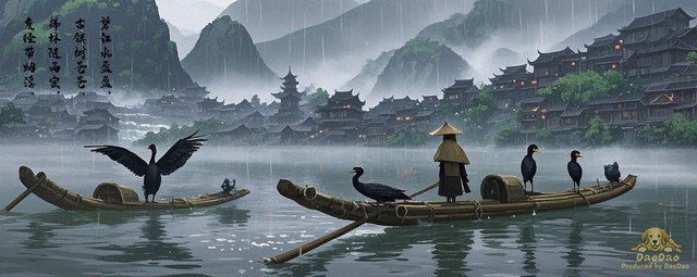 众人打眼望去,前方不远处的山脚下,坐落着一个古朴的镇子。由于下着大雨,它被一层雾气所笼罩。使得镇子与背后的大山融为了一体。正所谓,碧江水盈盈,古镇树苍苍。拂林随雨密,度径带烟浮。这远远看去,这古老的小镇散发出一丝神秘的气息。水面上有还有一些船只,它们都是当地的渔船。船上有一些正在工作的渔夫,他们身边围着几只鹈鹕,这种鸟是天生的捕鱼能手,是当地的特色。