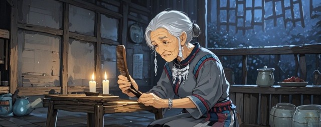 阿婆的房间虽然老旧,但是非常干净,一看就是经常打扫的那种。桌子上的油灯忽明忽暗,仿佛随时都要熄灭了一样。此刻,老人正借着那微弱的灯光,仔细打量着一把梳子。阿婆用布一遍又一遍的擦拭着那把梳子,思绪回到了几十年前·····