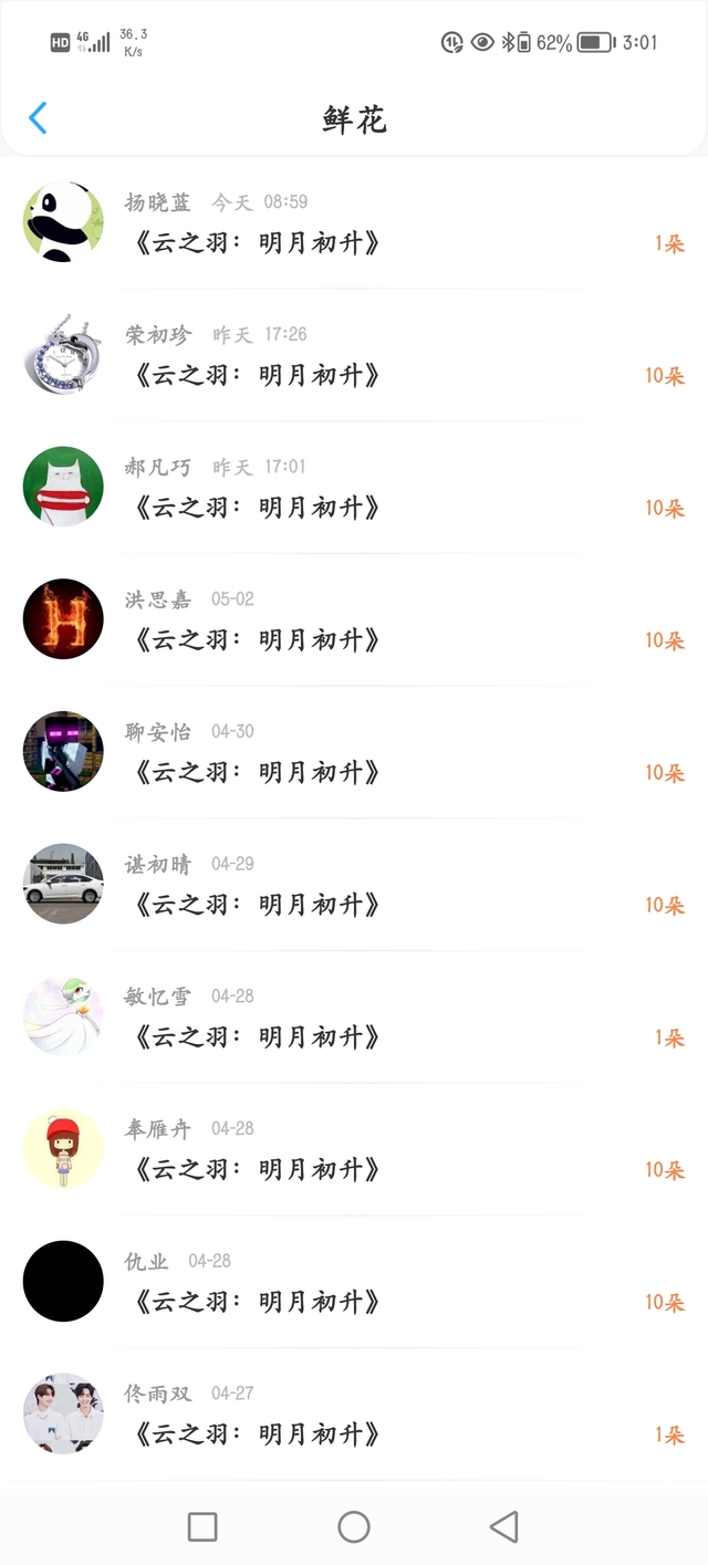 苒池棠(槐南)感谢宝子们的鲜花💐人数太多,就不一一截图啦