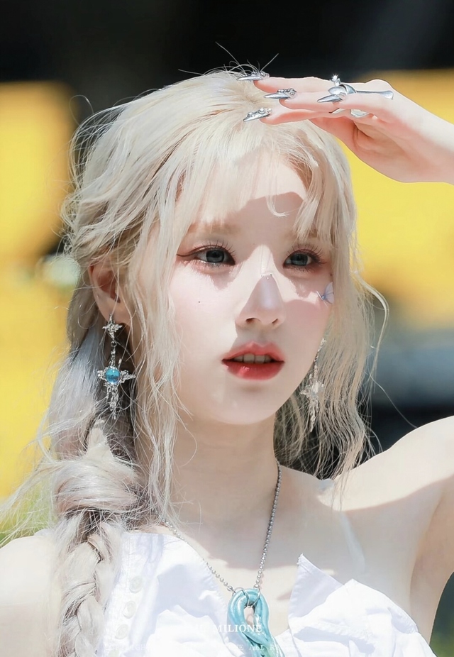 少女伫立在那里,宛如一幅清新的画卷。她金色的长发在阳光下泛着柔和的光芒,仿佛时间在这一刻停驻,只留下这份自然的美好。