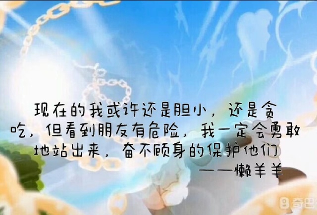 懒羊羊现在的我或许还是胆小,还是贪吃,但看到朋友有危险,我一定会勇敢地站出来,奋不顾身的保护他们 。