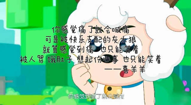 喜羊羊你感觉痛了就会喊痛 可是被快乐支配的灰太狼 就算感觉到痛 也只能笑着 被人骂 饿肚子 想起伤心事 也只能笑着
