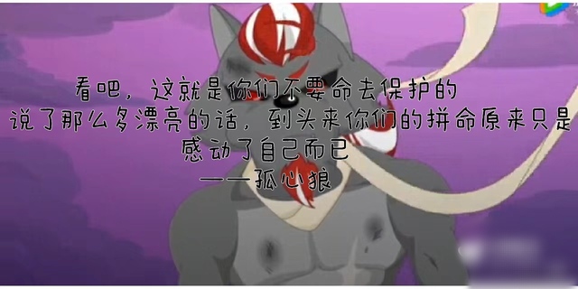 孤心狼看吧,这就是你们不要命去保护的人,说了那么多漂亮的话,到头来你们的拼命原来只是感动了自己而已。