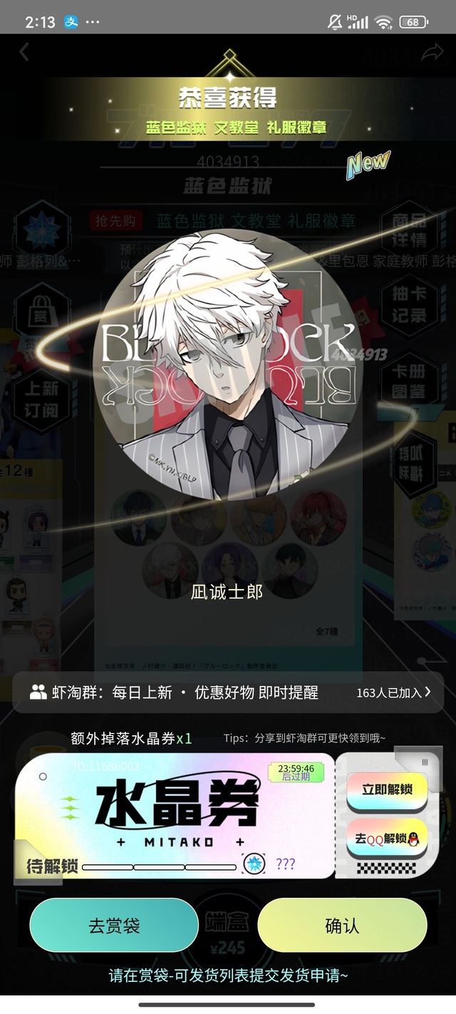 但是虽然看番,但是我还是有很喜欢的角色,蓝锁里的nagi凪诚士郎,当时初三上课拿我雄狮的漫画水灵灵地看,他一出场,我说他好帅,从此开始了对他的花钱之路