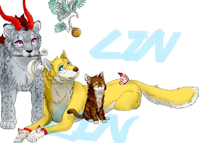 近期干的一张图,猫猫是自设,狼和雪豹是朋友的设。