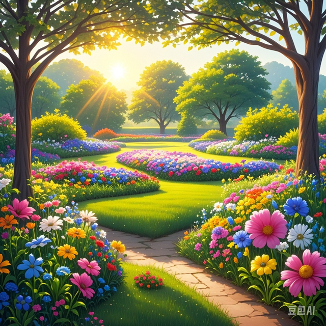 他发现自己身处一个陌生的地方,周围是一片美丽的花园,阳光明媚,温暖宜人。