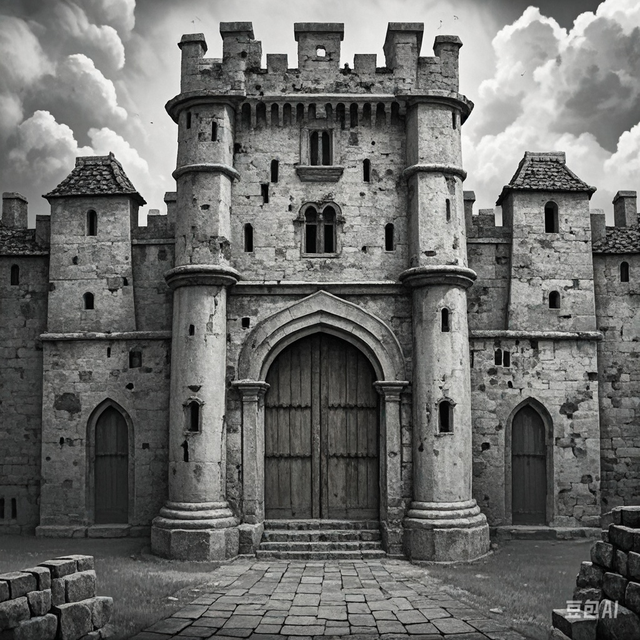 不知跑了多久,他看到了一座古老的城堡矗立在前方。城堡的墙壁斑驳破旧,大门紧闭,散发着一股腐朽的气息。