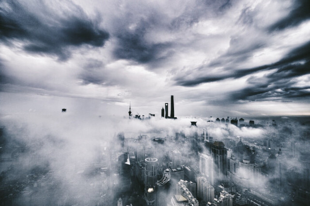 高耸入云的摩天大楼只剩下钢筋骨架,如同巨兽的残骸沉默矗立。断裂的桥梁横亘在干涸的河道上。灰蒙蒙的雾气弥漫在废墟之间,能见度极低。脚下是龟裂的沥青路面,缝隙里生长着顽强的暗红色苔藓。远处,偶尔传来几声无法辨明来源的、令人毛骨悚然的低吼。