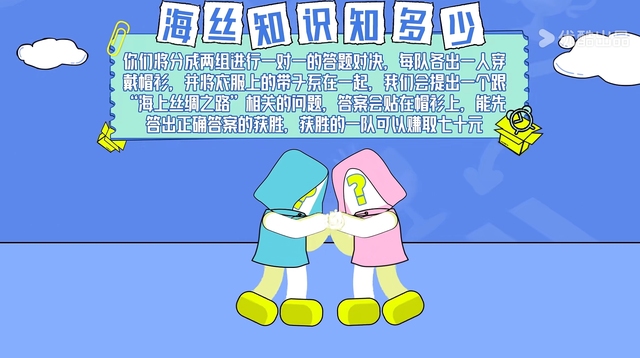 “这个点位给大家准备了是海丝知识知多少,因为我们是第一队来。但我们的这一个比赛它是需要两队才能够完成的。”