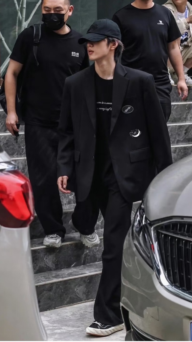 他身着剪裁凌厉的黑色大衣,脸颊被口罩勒出一丝轮廓,只露出低顺的眉毛,却怎么也掩盖不住那股清冽的野。