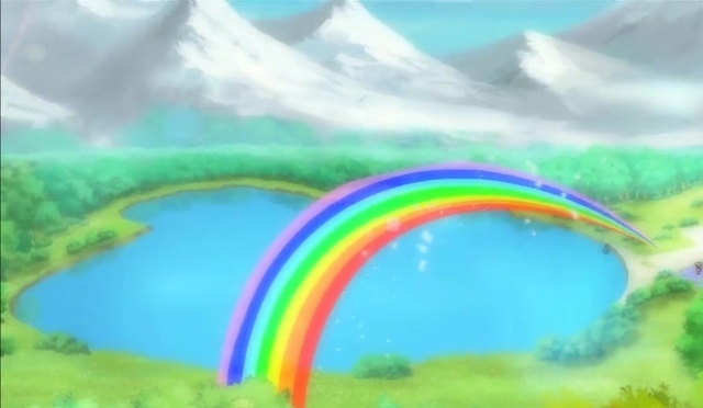 这时,天上出现了一道彩虹。