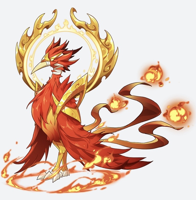 (赤乌火焰鸡:猛火宝可梦,火和格斗属性,火焰鸡的超进化形态,为了回应小遥以火焰洗涤了自身,获得了短暂飞行的能力,背后金轮能够发出上千度的高温)
