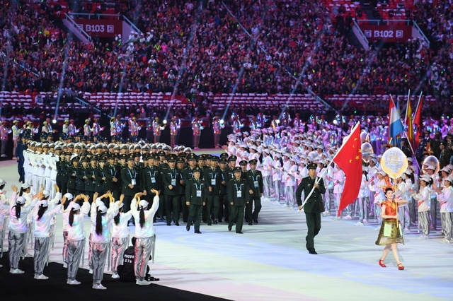 暮色渐沉,华灯初上,武汉的天空被绚丽的灯光映照得五彩斑斓。武汉体育中心宛若一颗璀璨的明珠,静静躺在长江之畔。人声鼎沸中,第七届世界军运会开幕式在万众期待中盛大启幕。