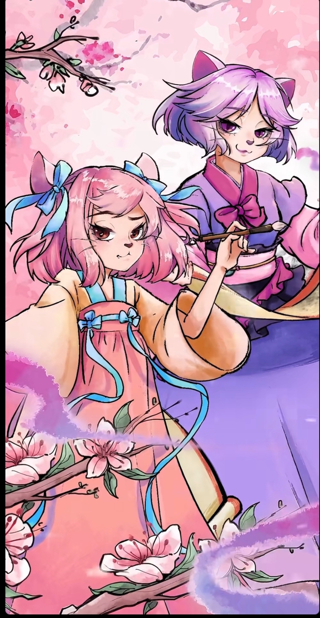 浅沭还有最近看喜灰官方发的,估计要弄异国的第三部了吧?因为经常看官方发这个关于小羊们猫化的两人图可能是