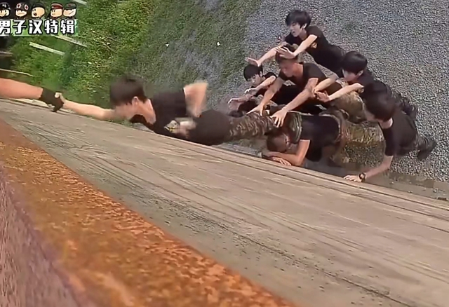 严浩翔爬上去之后下一个是陈泗旭 丁程鑫赶紧帮着教官一起去拉陈泗旭