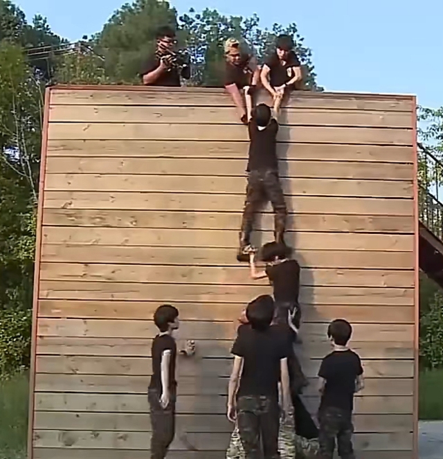 教官荣誉墙4米2 你们六个人,每个人都必须给我爬上去。