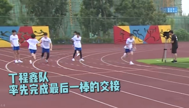 陈玺达重新接过棒奋力追赶完成最后的比赛 ,丁程鑫队胜出