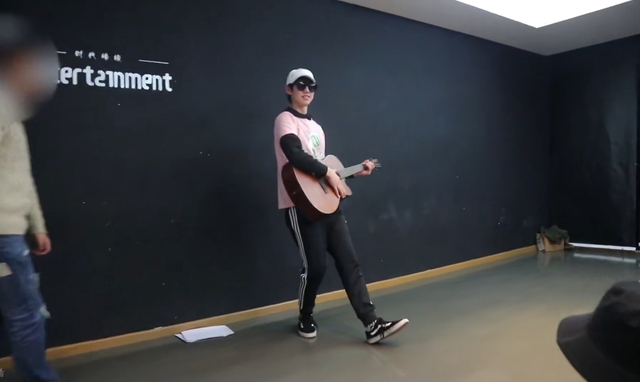 接下来陈玺达挑选一张照片。然后去衣帽间。选了一顶白色的帽子,黑色的墨镜,粉色的短袖拿了还拿了一把吉他。回到了舞蹈室