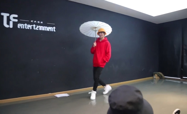 丁程鑫打着伞走到中间然后把伞收掉