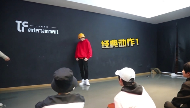 丁程鑫站起来学着敖子逸的动作
