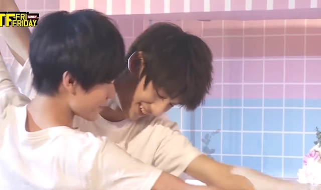 宋亚轩一把把刘耀文撂倒了。被宋亚轩压在身下的刘耀文开始进行反抗。两人开始扭打起来。