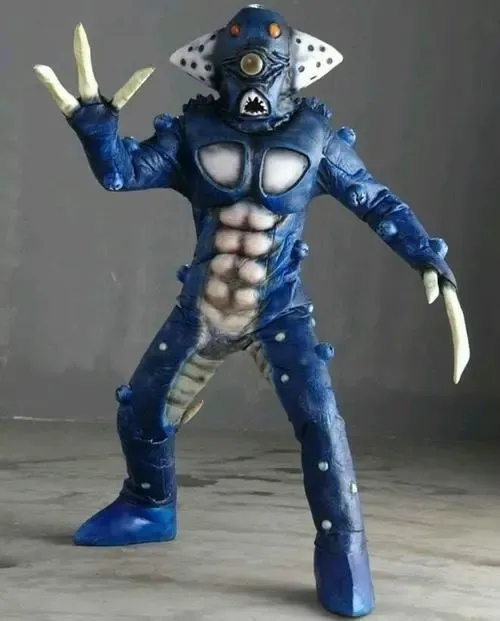 他缓缓转过头,只见一个通体蓝色、头部呈三角形状且仅有一只眼睛的怪物,正站在他的身后。