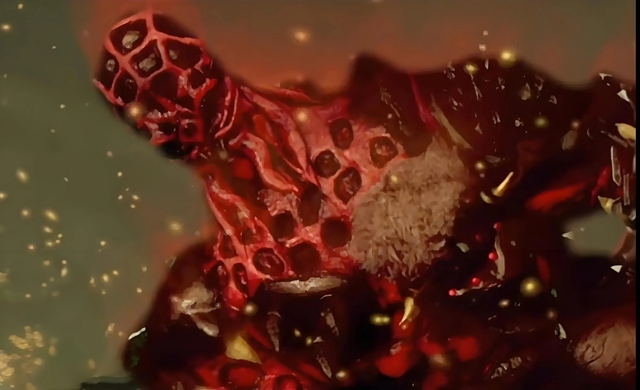 它张开了那散发着恶臭的大嘴,从喉咙深处不断喷射出绿色的黏液,犹如密集的箭雨,瞬间覆盖了渔民的脸庞。