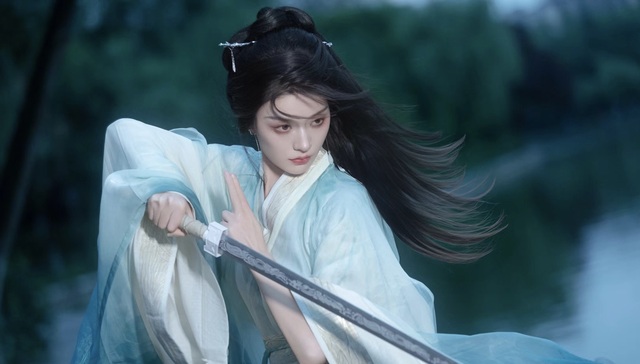 萧若风顺势躲过楚琬芝刺来的剑,随后拔出自己的剑跟楚琬芝打了起来,她手握长剑,眼神突然凌厉起来,眼波随着气势,整个人的气场变得强大起来