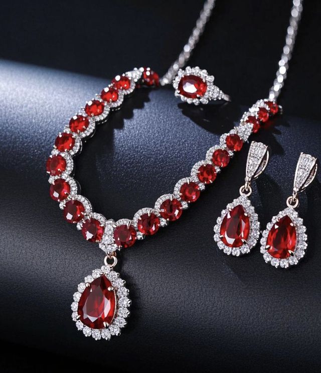 基正和银珠在柜台前精心挑选,最后买了一套水滴形的鸽血红宝石和一套长方形皇家蓝宝石。那水滴形的鸽血红宝石,犹如娇艳欲滴的红色泪滴,闪烁着动人心弦的光芒;长方形皇家蓝宝石,则像沉睡千年的古老符咒,蕴含着无尽的神秘力量。