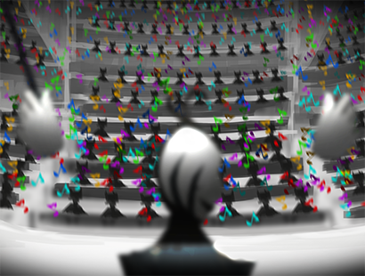 沉默乐团以及演奏家的脚下出现了一个灰色的台子,随后缓缓升起,音乐也到达了最后的高潮