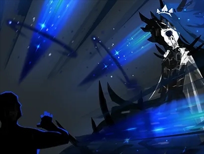 黑色的眼泪不断的从绝望骑士空洞的眼中流下,绝望的笑声从其嘴里发出,三把刺剑环绕在绝望骑士的身边,不断的刺向内维斯,内维斯拼命的招架着,无暇攻击