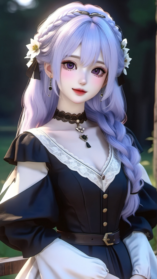 正当家父显得颇为尴尬之时,一位举止优雅、气质端庄的女子手擎酒杯缓步向父亲走去。她那一头柔顺的紫发如丝绸般轻盈垂落,紫色的双眸宛若两颗深邃的宝石,闪烁着温和而迷人的光芒。少女的每一个微笑、每一次轻移莲步,无不展现出其出身名门的独特风范。