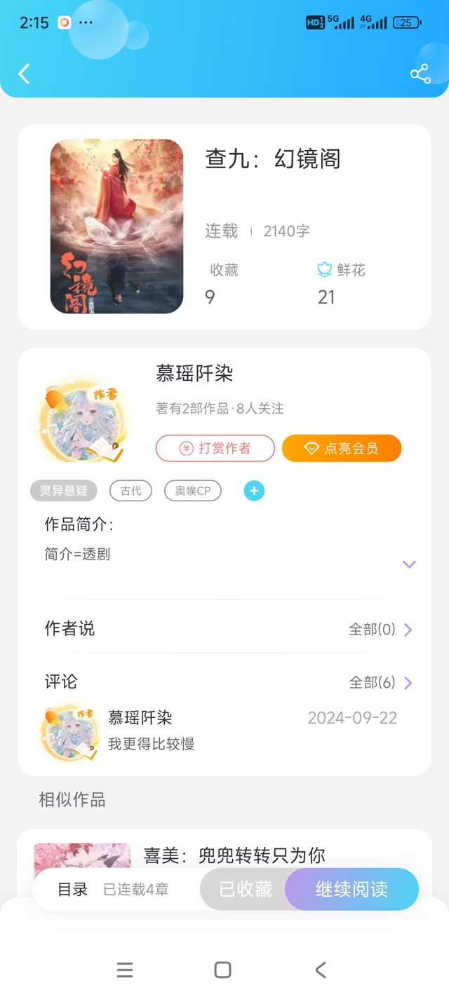 染梦羽(作者姐姐)第二人格那本《查九:幻镜阁》的书她要搬到我那个号去写