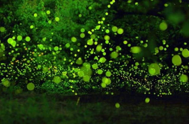 那些萤火虫飞来飞去的,像是午夜的小精灵,看到这么浪漫的画面,她的心里莫名的高兴。