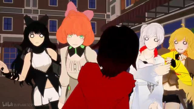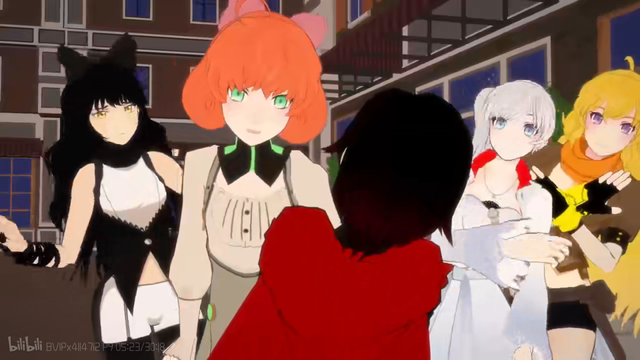 小海小源听到了一道熟悉的声音,随后他们在街对面看到了RWBY小队