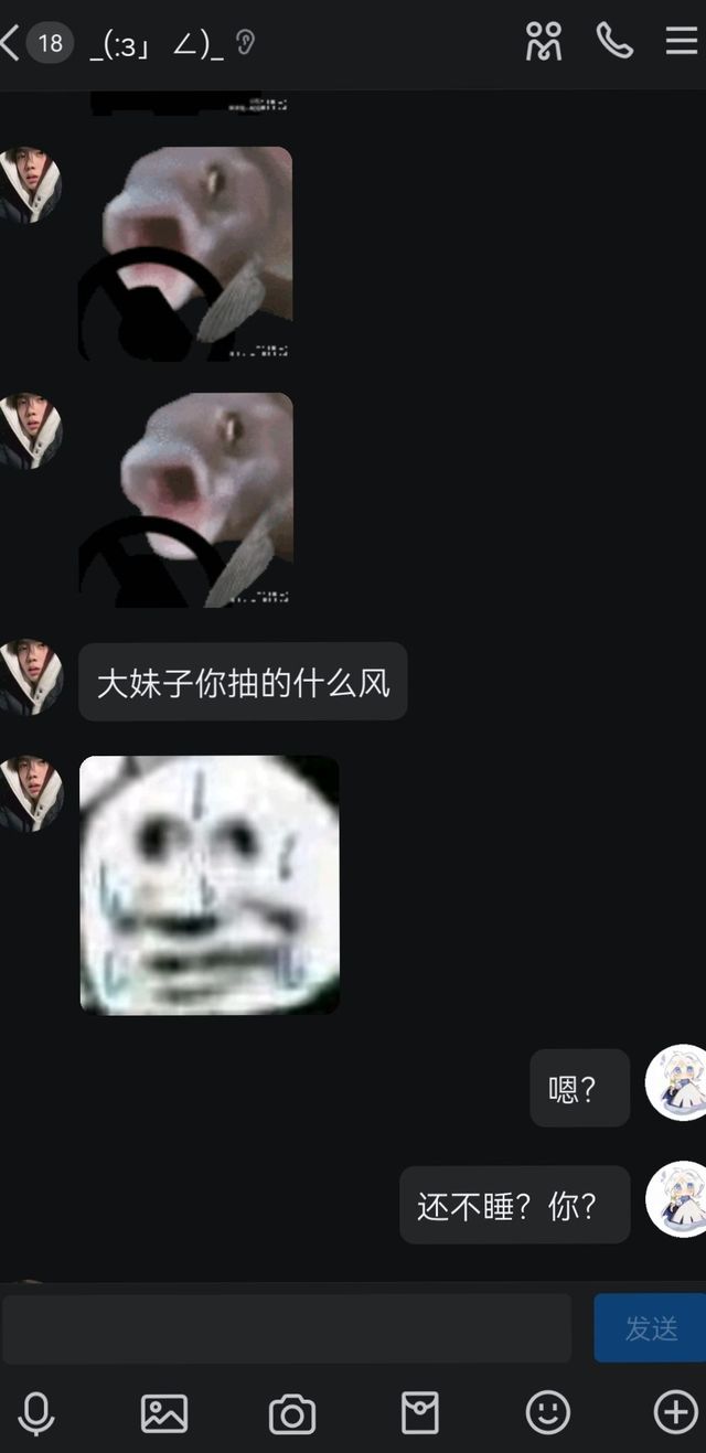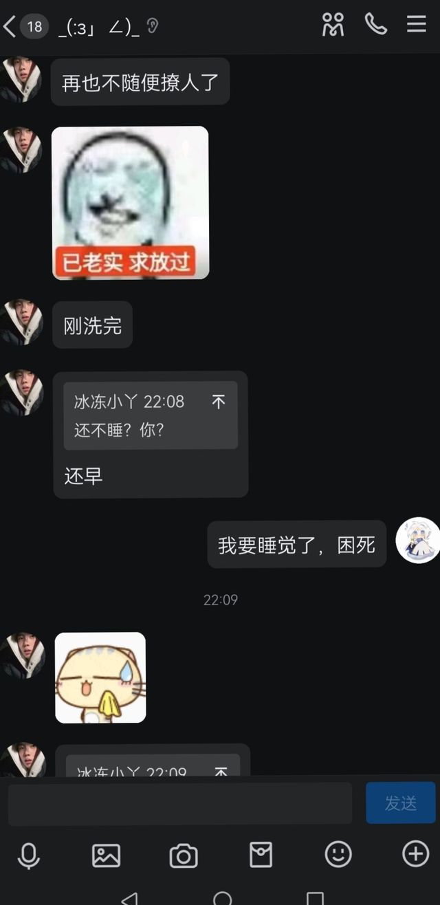 我有点难受也不疯了,正经点了,可是她贴贴希希,我没有不让贴,只是她们聊天好投机,好像把我忘了,我也融入不进去,因为我不怎么玩抽象,也不是很幽默,还社恐敏感爱胡思乱想