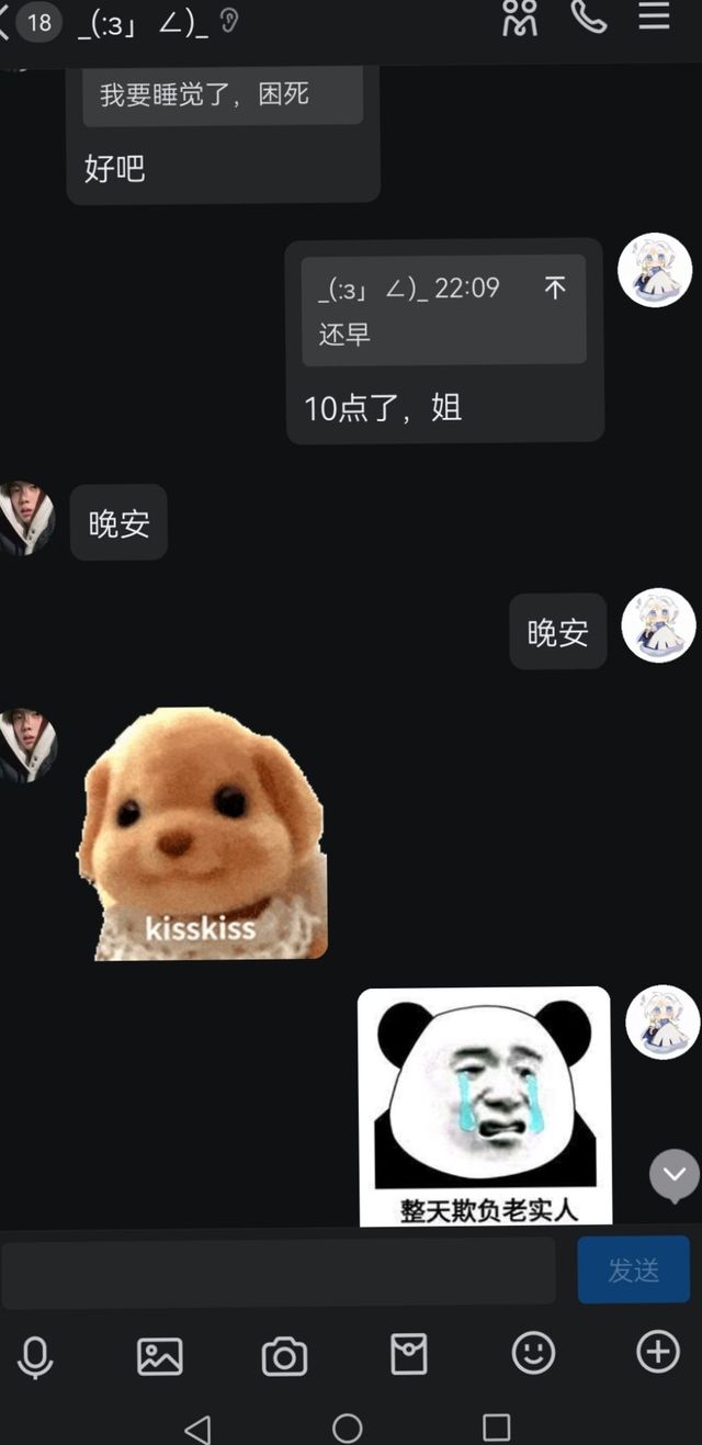 希希大号也传过来了,其间同学也传过来,看我哭成那样又先告辞了,我后面重看对话框才知道,希希怎么安慰我的我不知道,记不清了