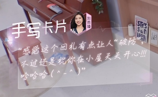 肖宇翔拿着刘雨璠给的礼物回自己房间,发现了手写卡片