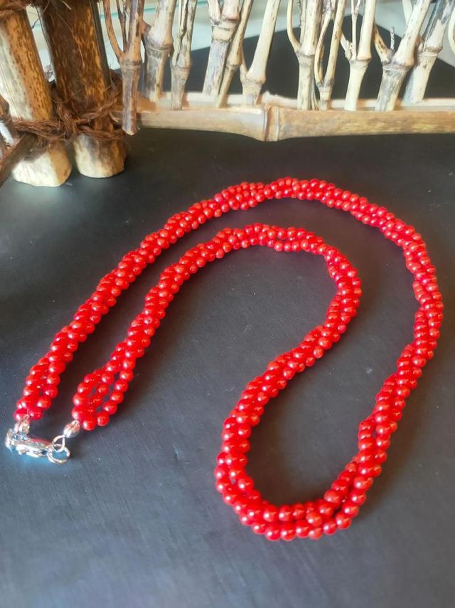 芷兰的礼物是一条用南海珊瑚制成的项链,珊瑚颜色鲜艳,打磨得光滑圆润,颗颗珊瑚之间以金丝相连,搭配着一颗精致的珍珠吊坠