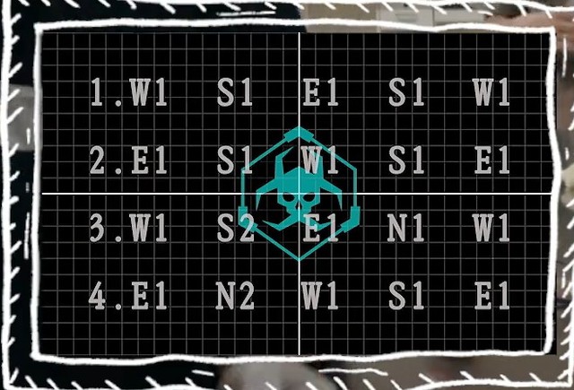 研究室不大,两边摆了2个大铁架子,上面放满了各种药剂。中间摆放着一张桌子,一台电脑,电脑屏幕显示画面“W E S N”和数字组成的一些代码。同时也被一横一竖两条线划分为四个区域。(看下图)