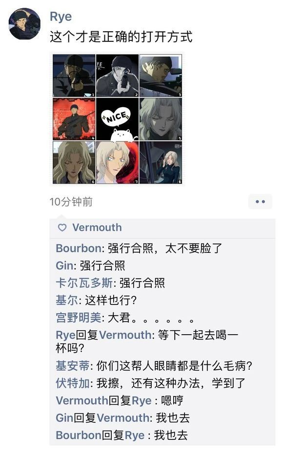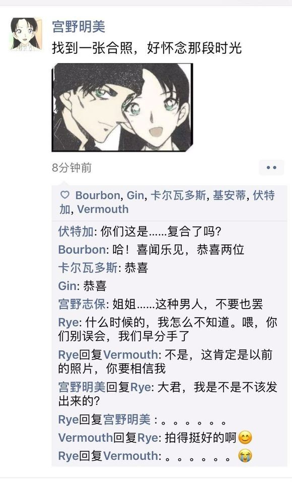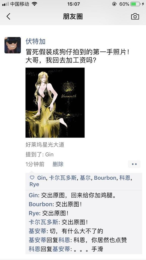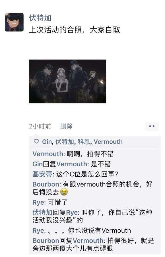 作者发一个黑衣组织的朋友圈