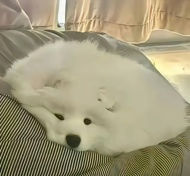 芽芽(吃完狗粮后乖乖去窝里睡觉,委屈巴巴的)