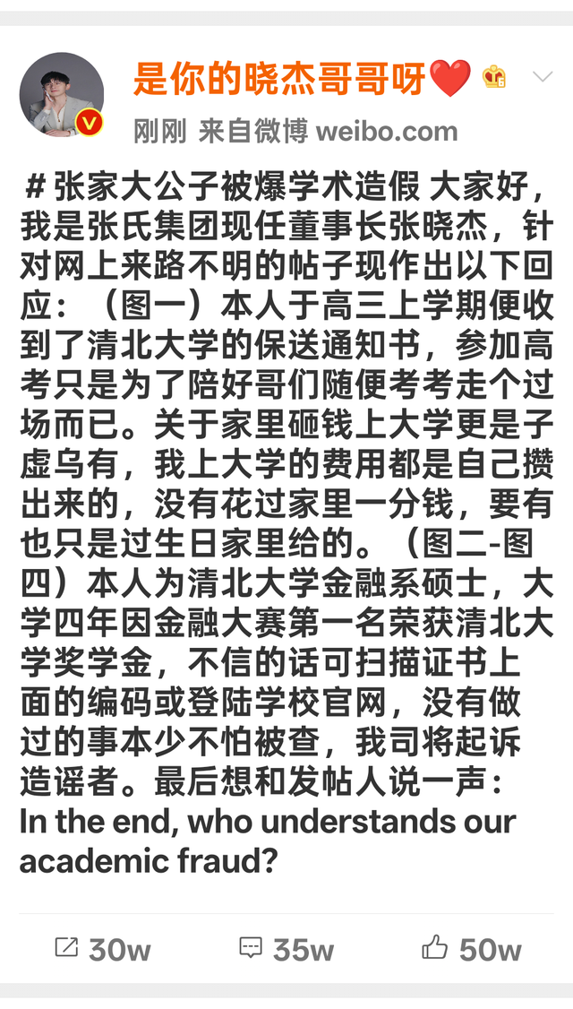 随后张晓杰发了一条微博