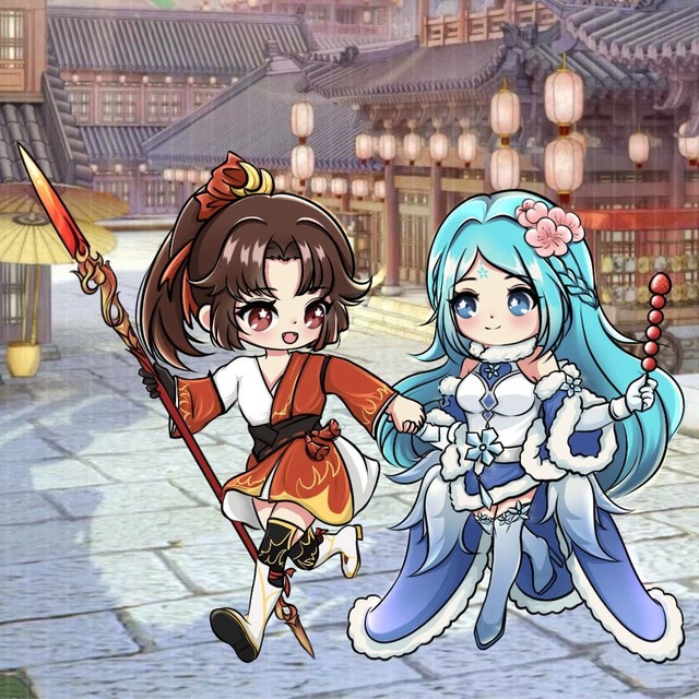 这个是我花了 180 元的约稿,参考了锌之助的画风。这个图的情景设定就是云缨参加鸿卢演武比赛,然后拉着王昭君一起去。建议搭配上著名的音乐《鸿卢演武》效果更佳。
