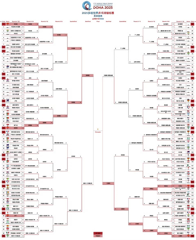 2025多哈世界乒乓球锦标赛男单四强: